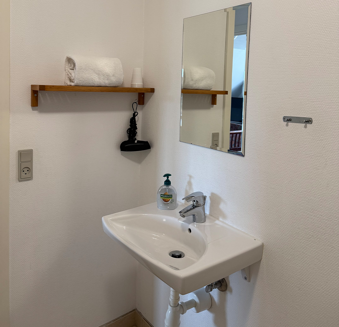 VærelseVærelse med tre sovepladser og privat badeværelse.